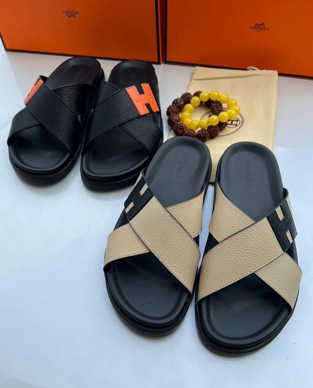 Men's Hermes Slipper -beige Black